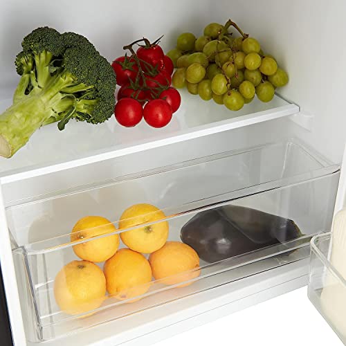 - Packing many features such as, a adjustable temperature control, 2 removable glass shelves with Vegetable drawer and adjustable legs. As well as a reversible hinged door, making this suitable for any Kitchen or space.